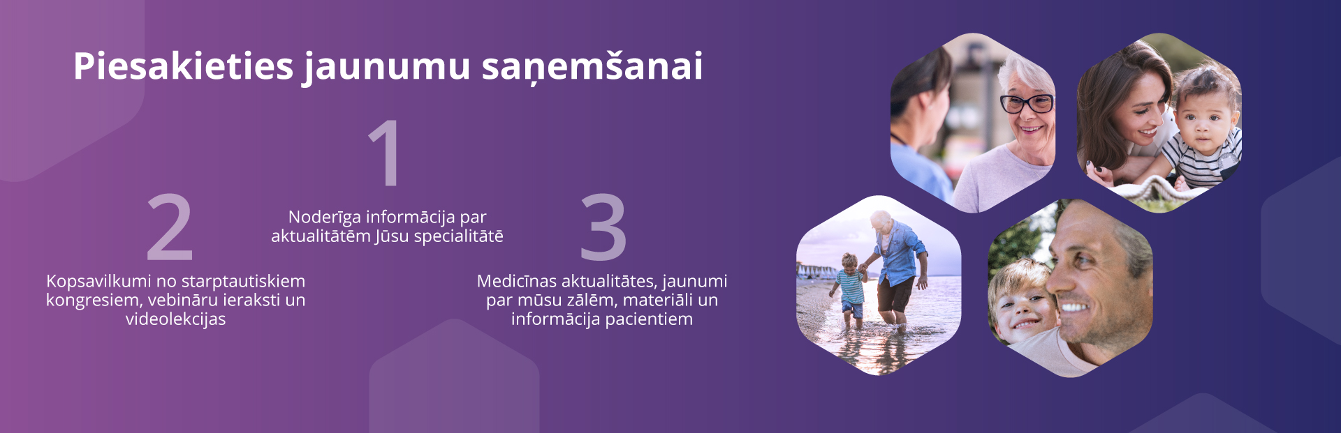 Es piekrītu, ka mani sniegtie personas dati tiks apstrādāti saskaņā ar Viatris privātuma politiku un Viatris lietošanas noteikumiem. Es saprotu, ka mani sniegtie personas dati var tikt nodoti Viatris uzņēmumiem, tostarp asociētajiem uzņēmumiem, ES vai ārpus tās, ja vien tiek nodrošināts atbilstošs drošības līmenis. E-pastā es piekrītu saņemt personalizētu mārketinga paziņojumus (informāciju par medikamentiem un jaunumiem terapijas nozarēs, ielūgumus uz izglītojošiem pasākumiem), kas pielāgoti tieši man. Šajā gadījumā Sabiedrība personalizēs Paziņojumus atbilstoši manam amatam un specialitātei, pilsētai, kurā atrodas mana ārstniecības iestāde, pasākumiem, kuros esmu piedalījies/-usies, un veiks citas līdzīgas personalizētās komunikācijas. Šī piekrišana ir spēkā līdz tās atsaukšanai. Sabiedrība atgādinās par tiesībām atsaukt piekrišanu vismaz reizi 5 gados. Ņemot vērā normatīvajos aktos par zāļu reklamēšanu noteiktās prasības un ierobežojumus, Sabiedrība periodiski pārbaudīs manu ārstniecības personas identifikatoru, lai pārliecinātos, ka Sabiedrība joprojām var man reklamēt savus produktus, nepārkāpjot piemērojamās juridiskās prasības. Esmu informēts/-a, ka es jebkurā laikā varu atsaukt savu piekrišanu, sazinoties ar Sabiedrību pa tālruni +371 67605580 un/vai izpildot norādījumus, kas sniegti katrā mārketinga e-pastā, kā arī īstenot savas citas tiesības, kas norādītas Sabiedrības Privātuma paziņojumā. Es apstiprinu, ka esmu veselības aprūpes speciālists.